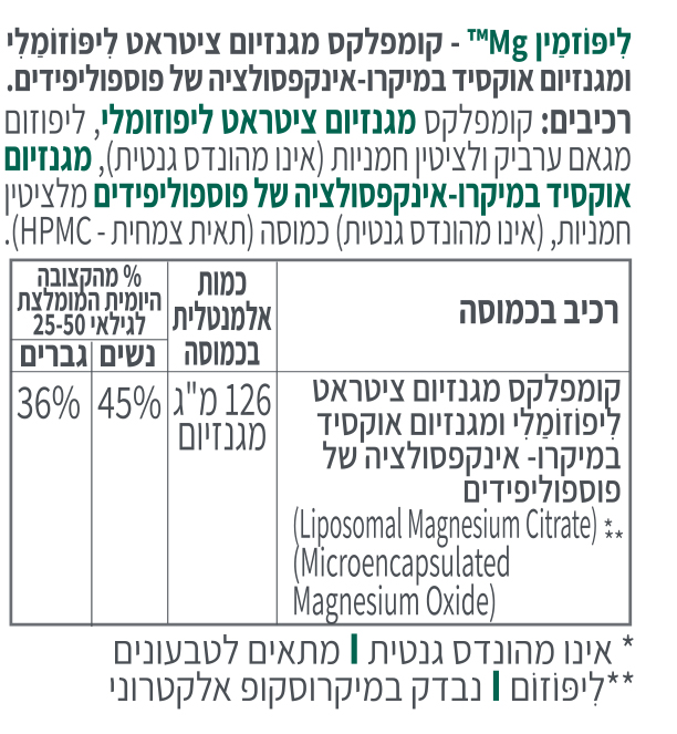 ליפוזמין Mg – קומפלקס מגנזיום ציטראט לִיפּוֹזוֹמַלִי.